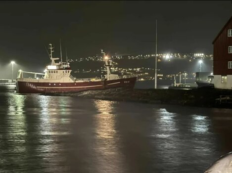 Tá garnaskipið Thor kom inn um Molan í týskvøldið riggaði ikki at stýra skipinum sum spakuliga bar við land. Løgreglan ger ikki meira við málið