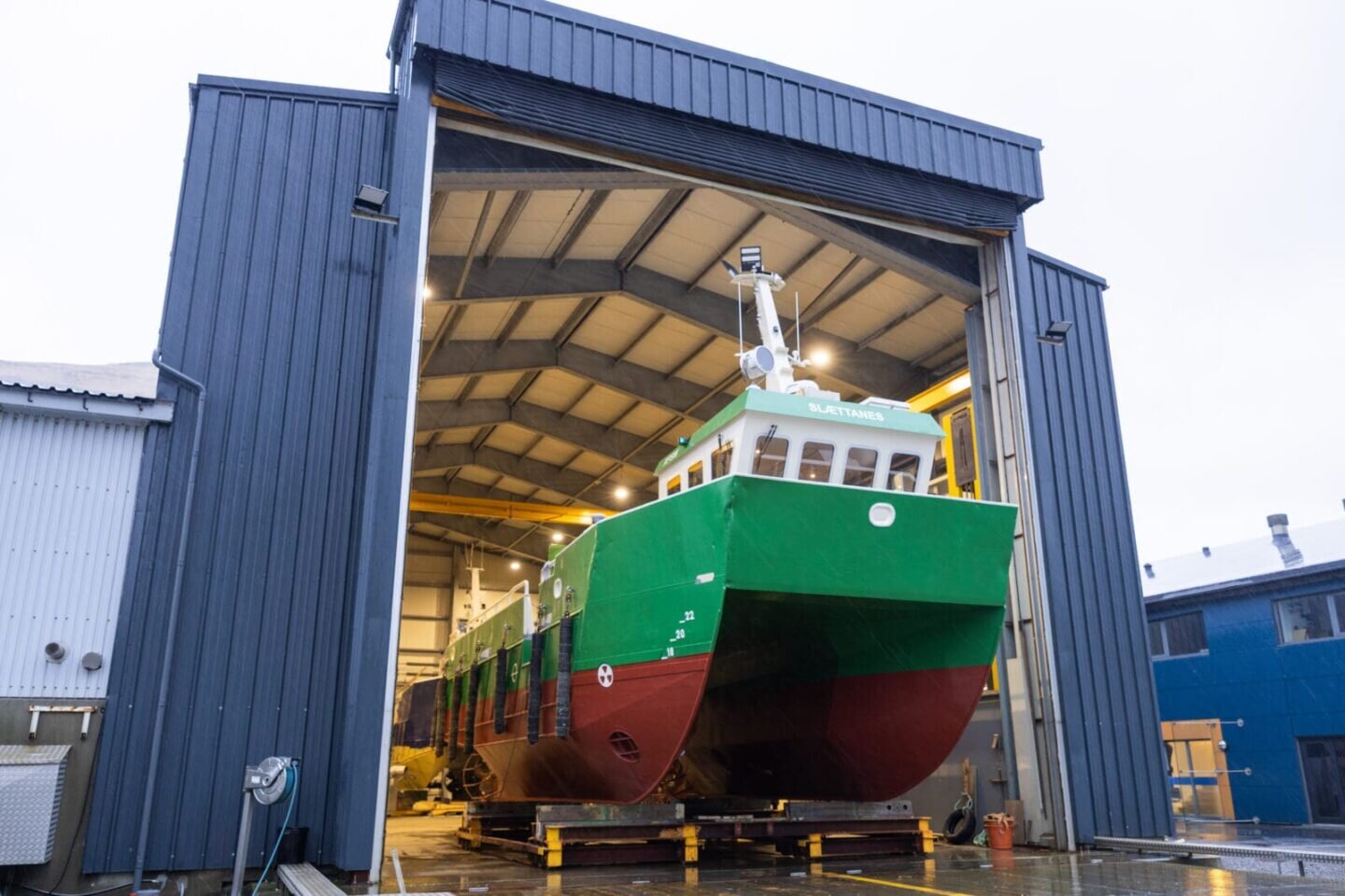 Tvíkiljan hjá alifyritøkuni Hiddenfjord, hevur verið i dokkhøllini hjá KJ í Klaksvík í nakrar vikur, til nýggj FMA krøv, viðlíkahald og eftirlitsarbeiði. Tvíkiljan, sum er nýbygningur nummar 17 hjá KJ, er bygd í 2017 og er 13 metrar long og 6 metrar breið.