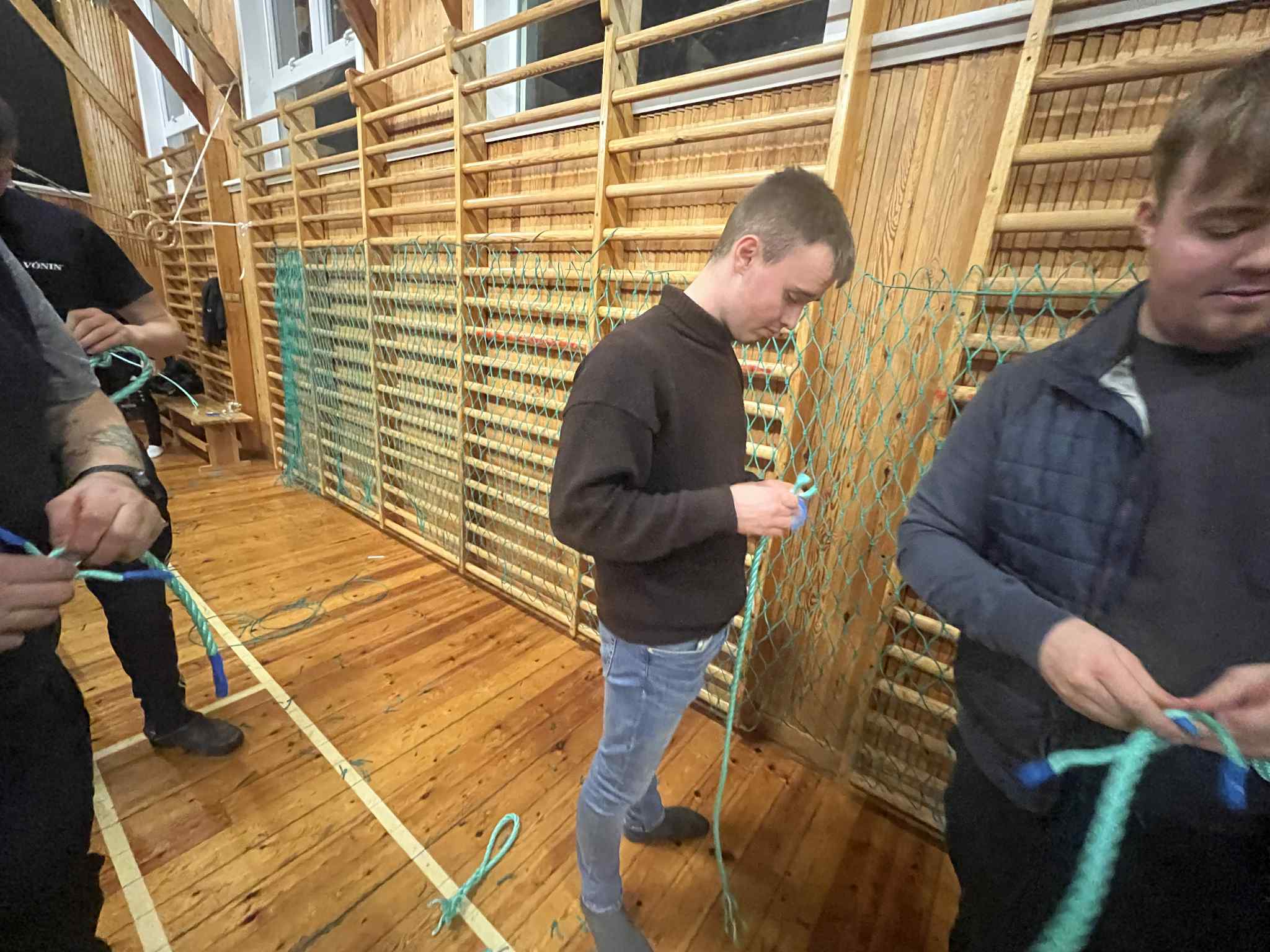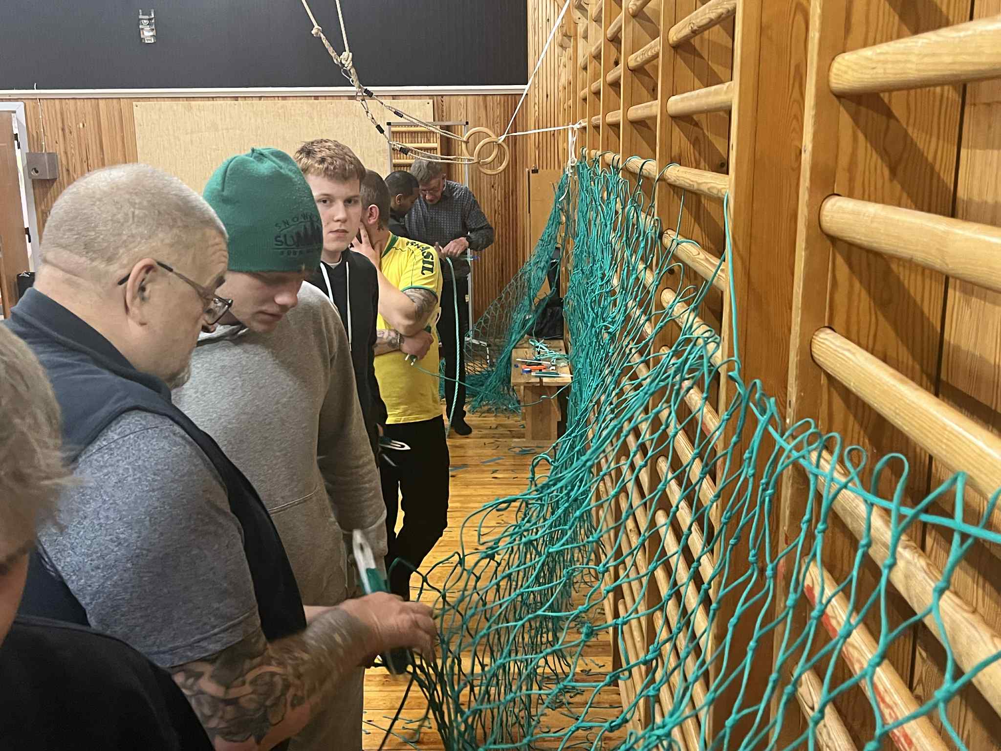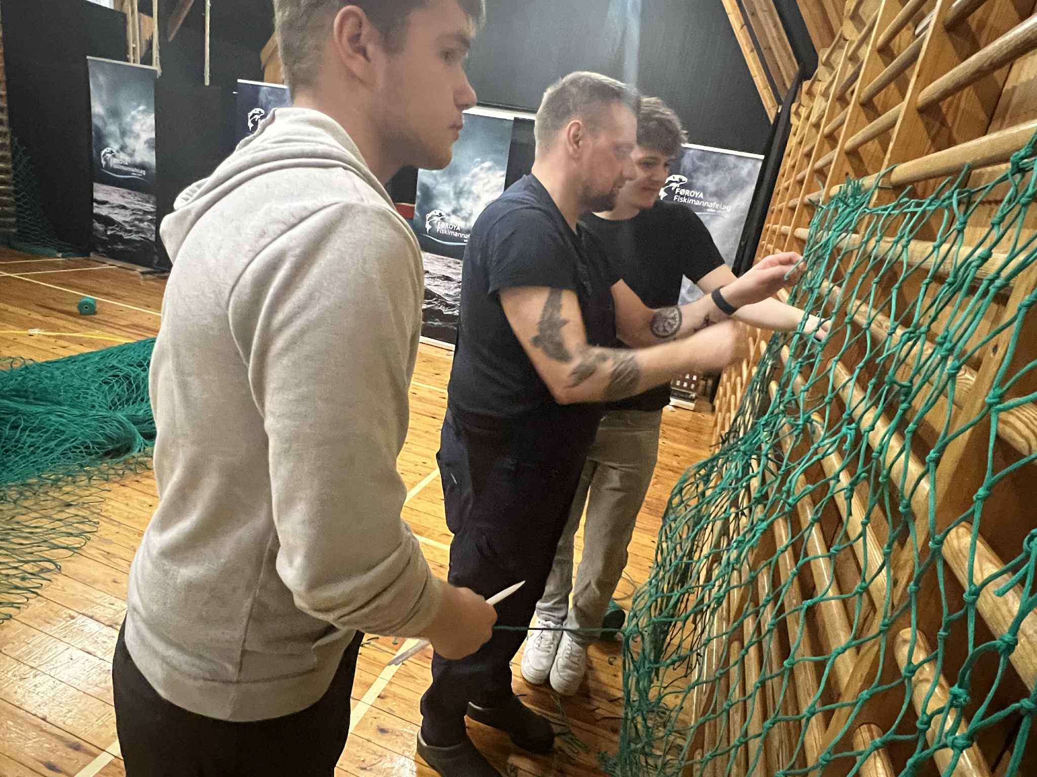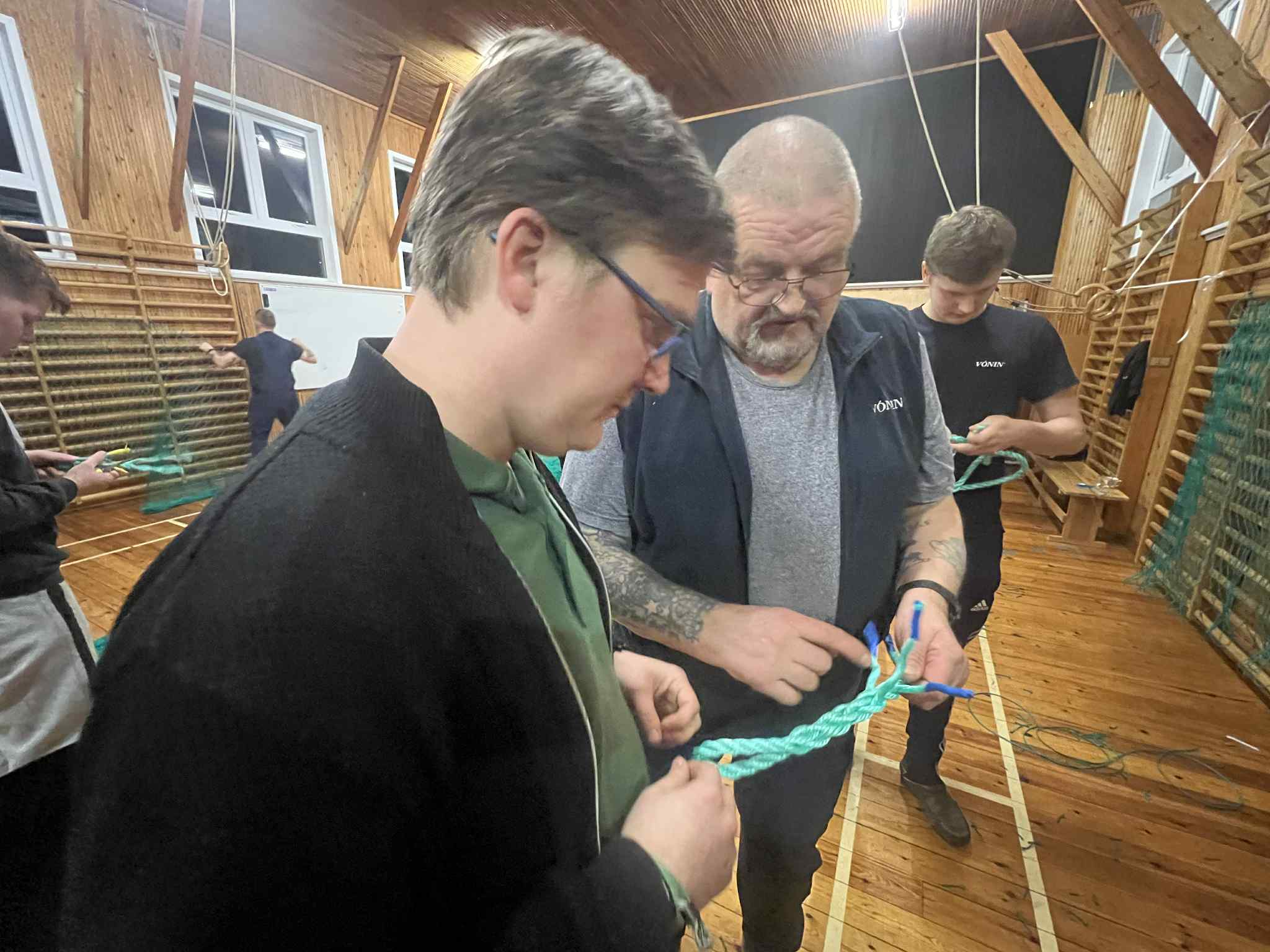 Luttakararnir lærdu at bøta vanlig net, so sum hol og tungur, seta stykkir í, møguliga spleysa og gera ymiskar knútar og annað.