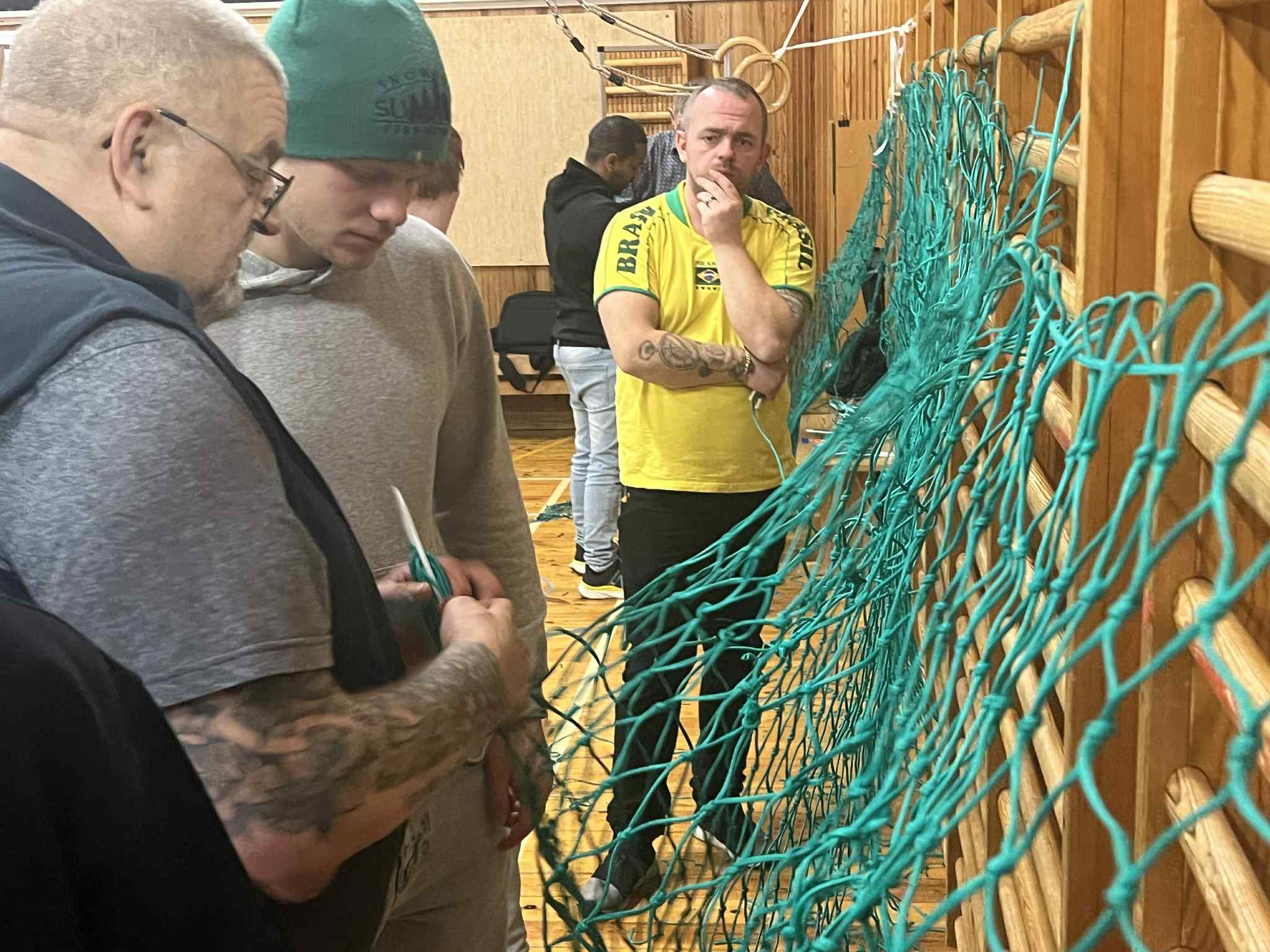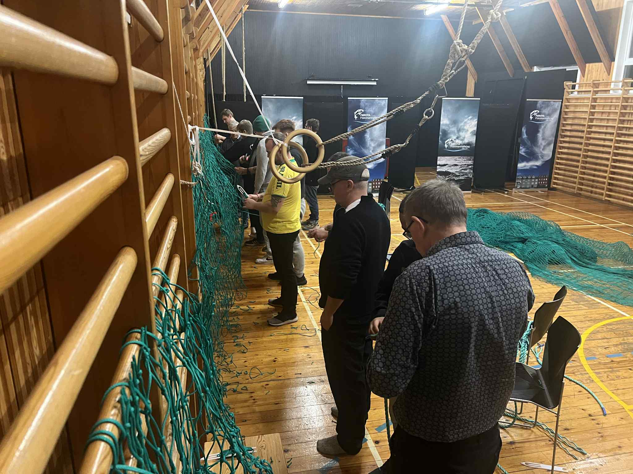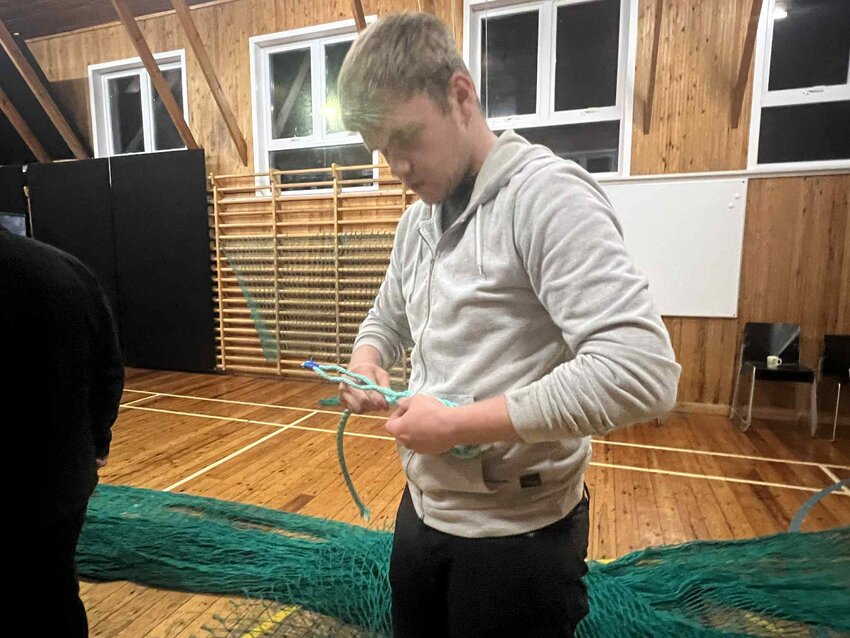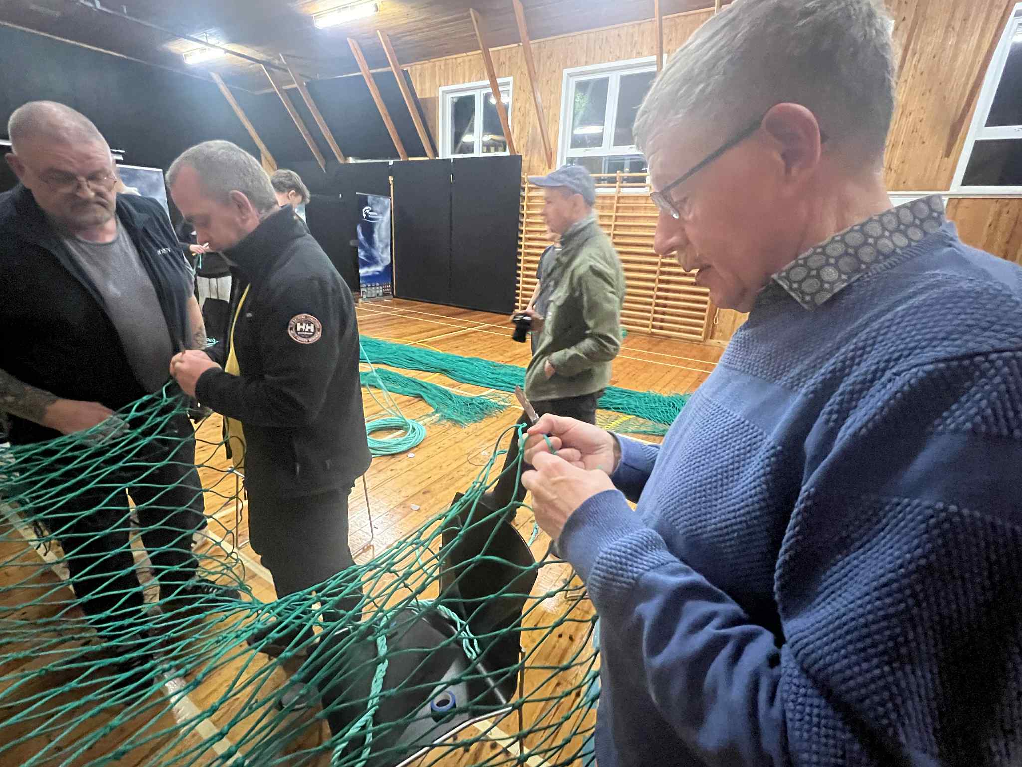 Luttakararnir lærdu at bøta vanlig net, so sum hol og tungur, seta stykkir í, møguliga spleysa og gera ymiskar knútar og annað.