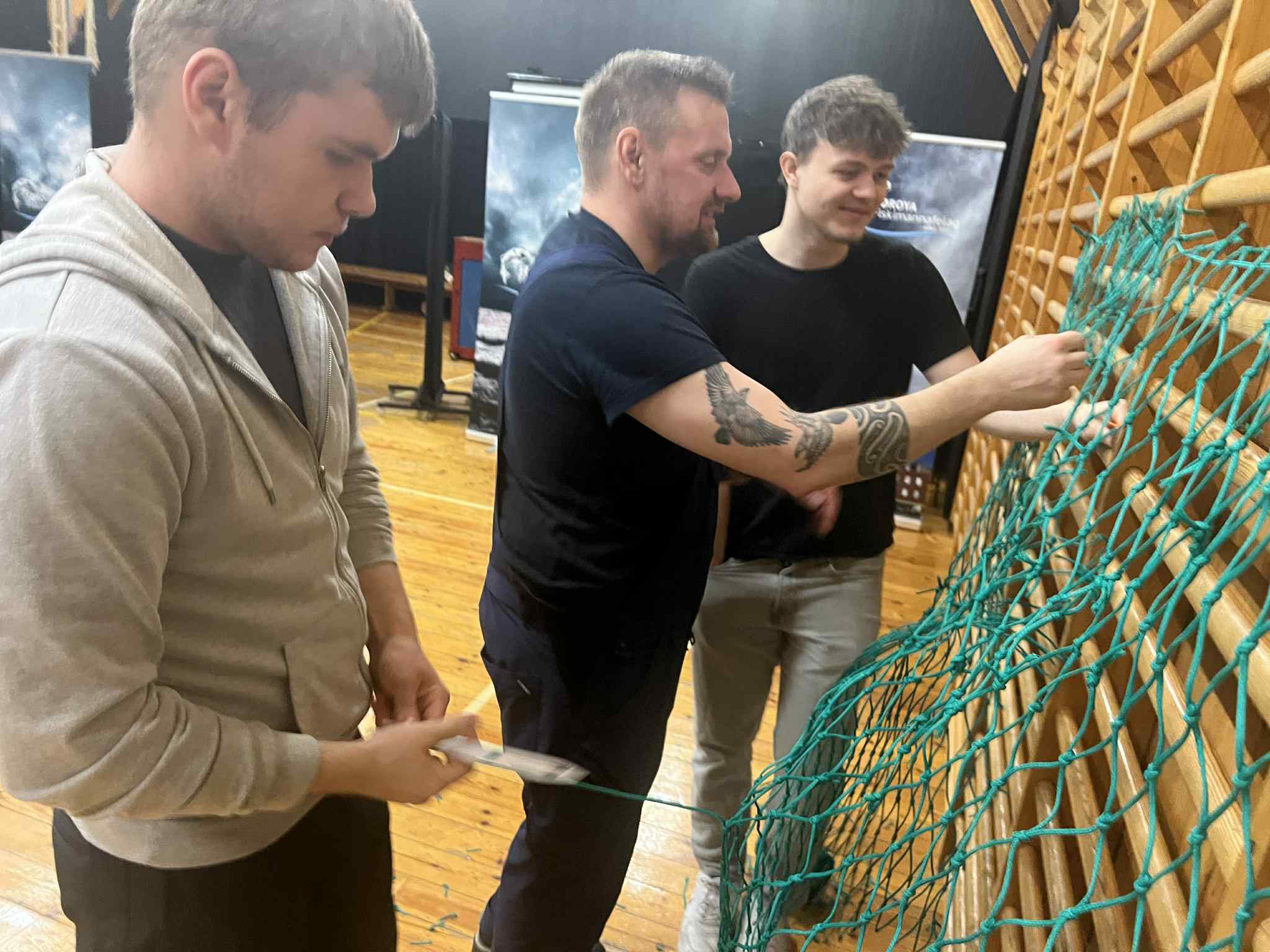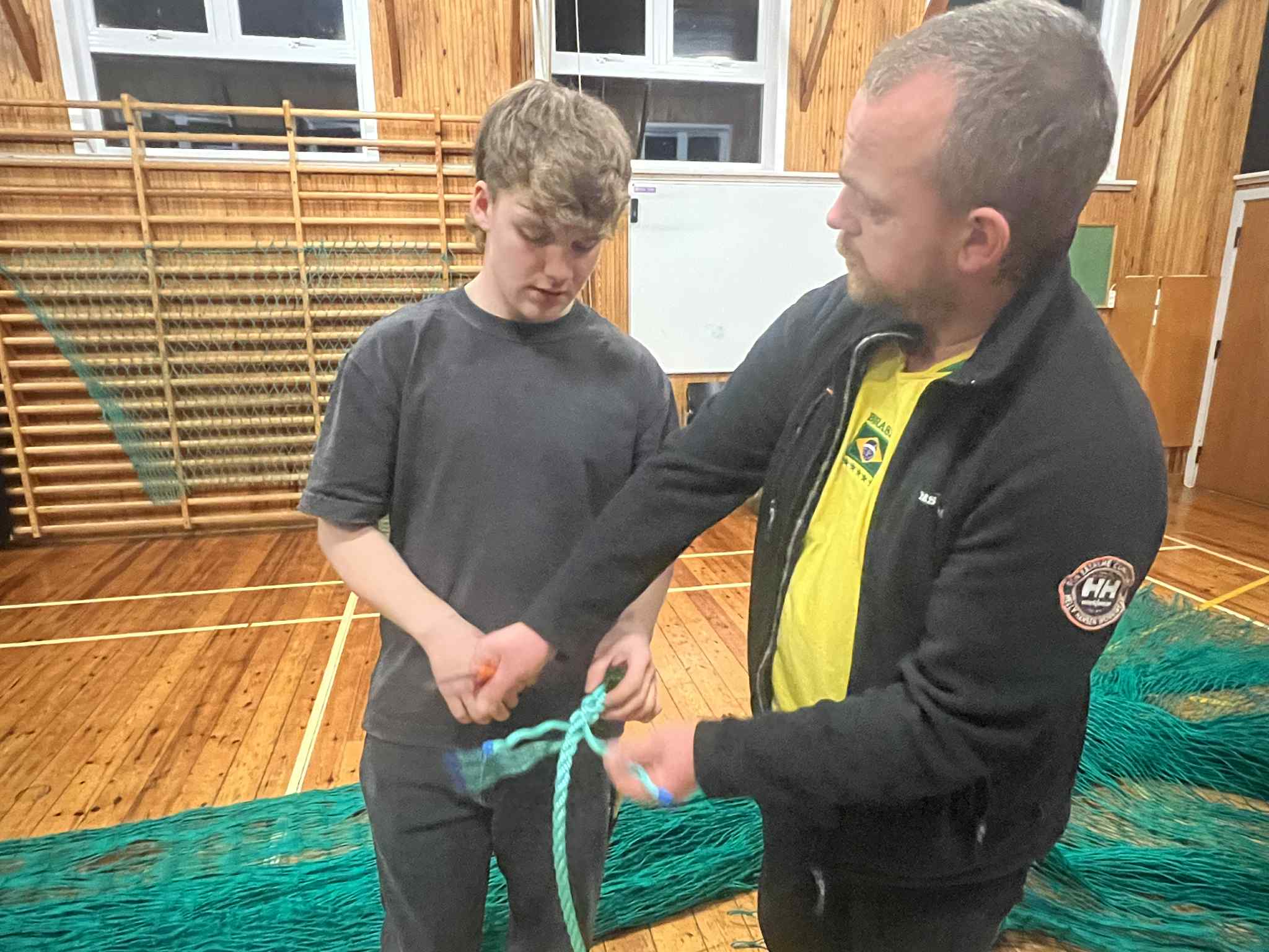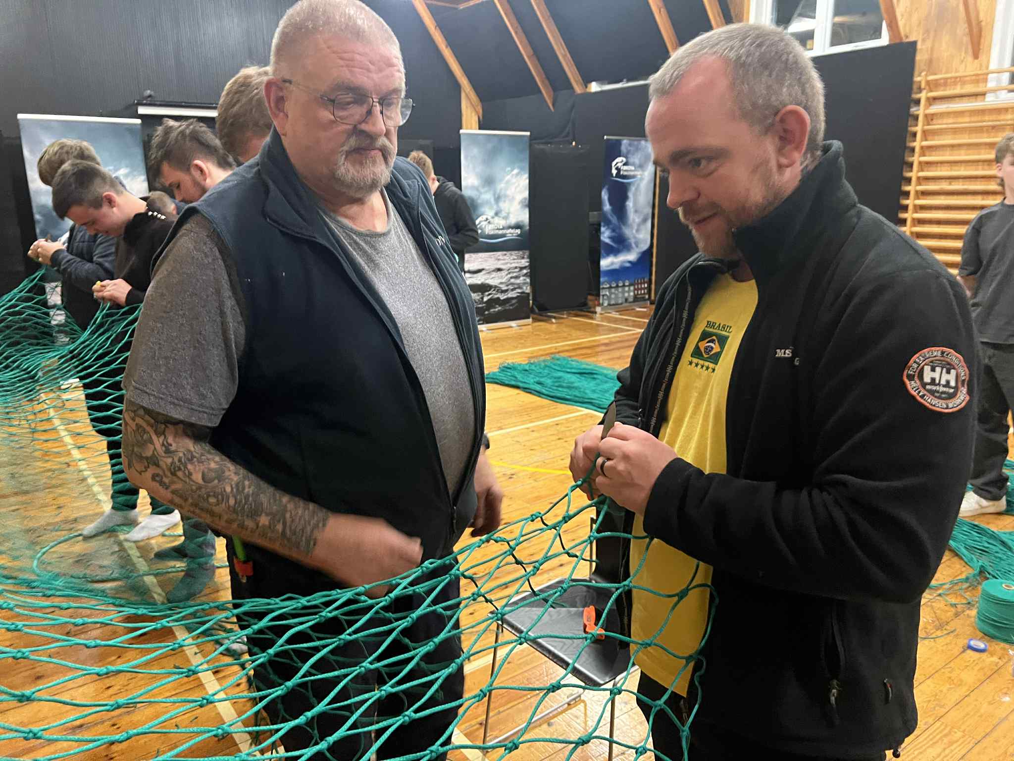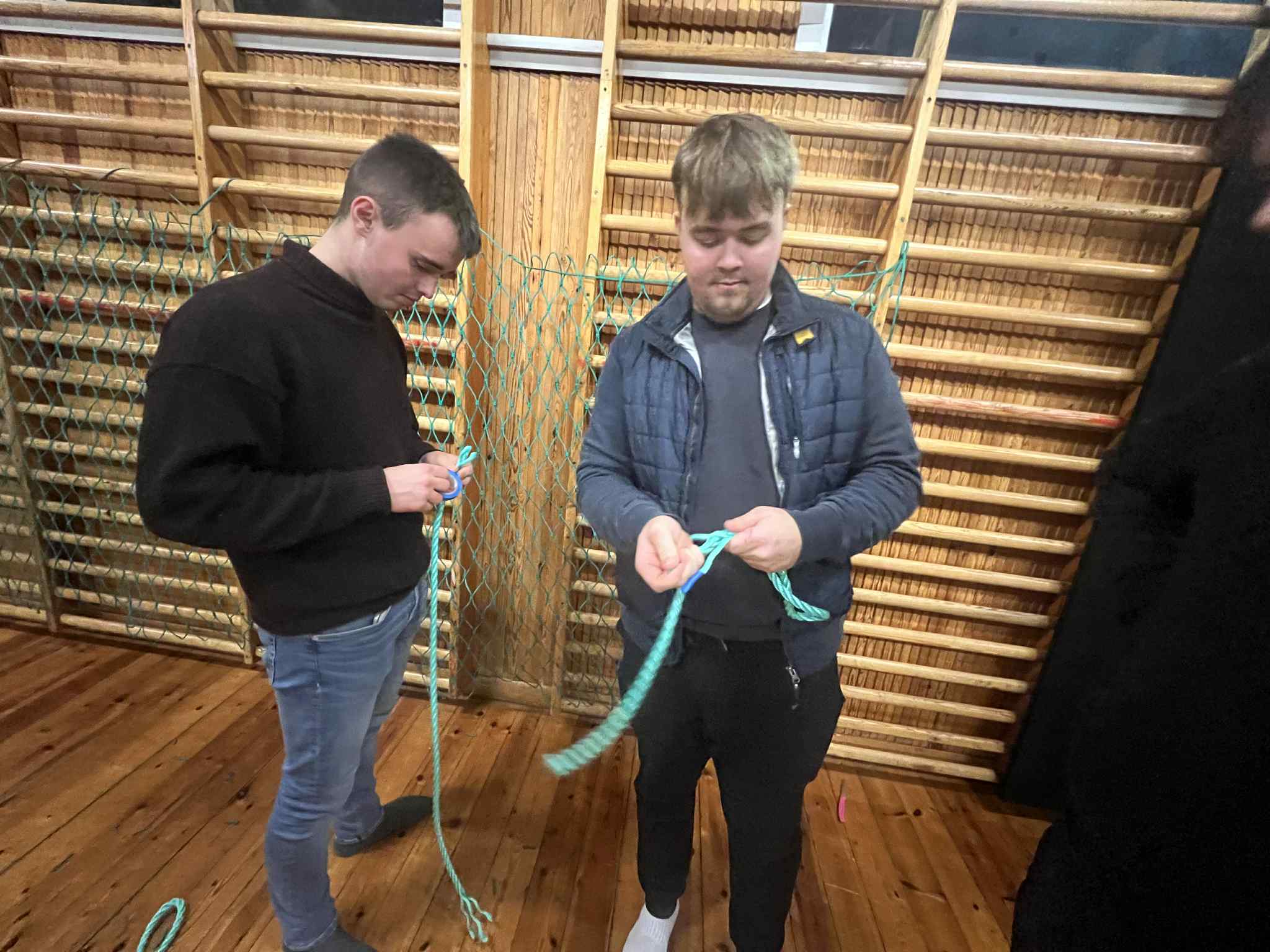 Luttakararnir lærdu at bøta vanlig net, so sum hol og tungur, seta stykkir í, møguliga spleysa og gera ymiskar knútar og annað.