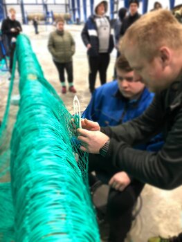 Luttakararnir læra at bøta vanlig net, so sum hol og tungur, seta stykkir í, møguliga spleysa og gera ymiskar knútar og annað.